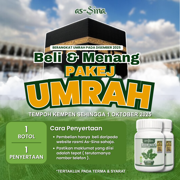 Kami ada berita gembira untuk anda. Khas sempena kempen kali ini, anda berpeluang memenangi pakej Umrah Disember 2025. Setiap 1 botol pembelian produk melayakkan anda untuk 1 penyertaan.